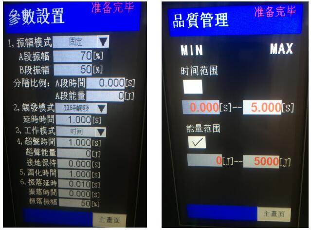 超聲波焊接參數:
